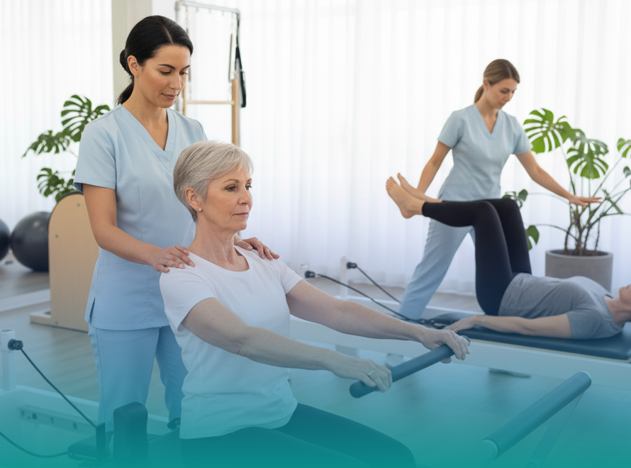 Klinik pilates, fizyoterapist veya uzman eğitmen eşliğinde yapılan, kas-iskelet sistemi sorunlarını düzeltmeye ve vücut dengesini yeniden kazandırmaya yönelik özel bir pilates yöntemidir. Konya’daki klinik pilates derslerimiz, kişiye özel olarak planlanır ve hem tedavi hem de güçlenme amacıyla uygulanır.